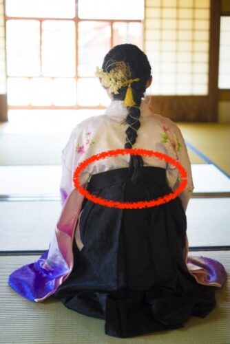 帯が袴で隠れている部分が